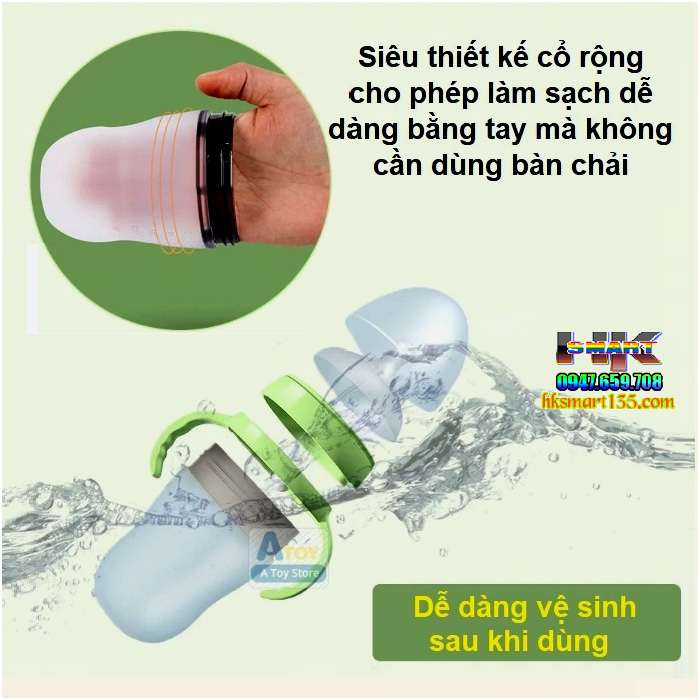 – Với thiết kế miệng bình rộng 65mm nên có thể rửa sạch bằng tay không cần dùng tới chổi cọ để giữ bình bên hơn.