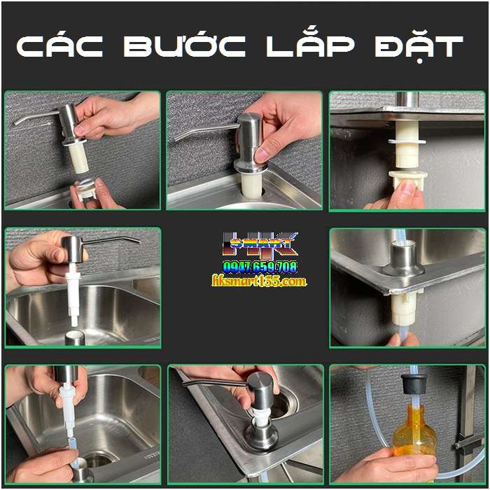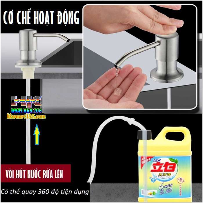 LƯU Ý: Do ống dẫn dài nên mồi lần đầu có thể phải nhấn đi nhấn lại nhiều lần. Để nhanh và dễ dàng hơn, bạn có thể nhấc bật ngay tại vòi nhấn lên và đổ trực tiếp đầy chút nước rửa vào sau đó lắp lại vòi và sử dụng.