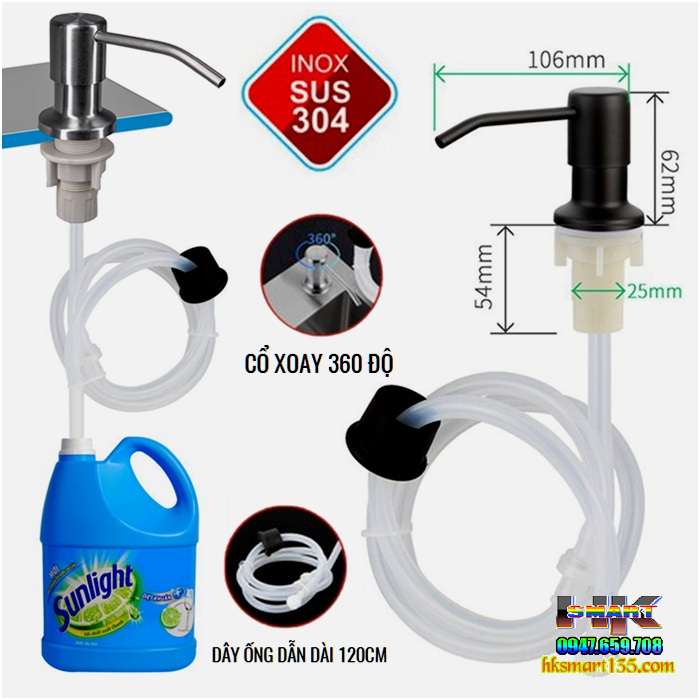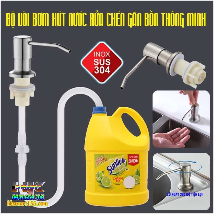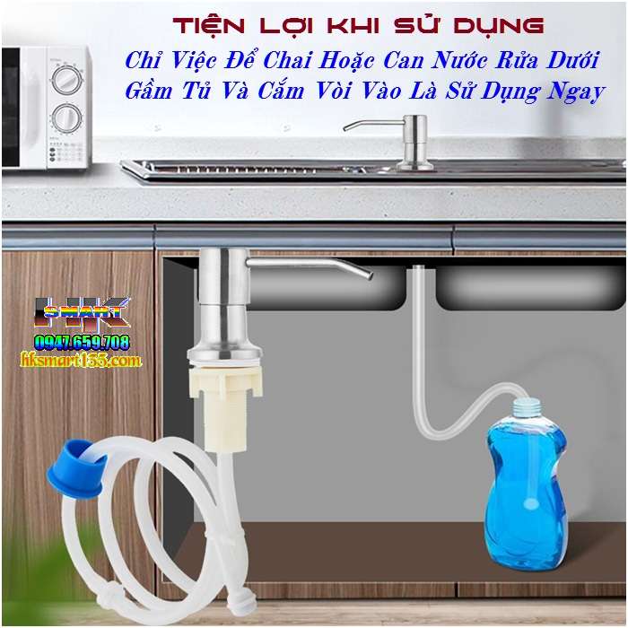 Bộ vòi bơm xịt nước rửa chén gắn bồn giúp bạn lấy dầu rửa bát, xà phòng cực kỳ dễ dàng tiện lợi. Bạn không cần phải mua từng chai nhỏ nữa, mà có thể dùng cả can to để ở dưới bồn và dẫn dầu rửa bát lên và dùng cho đến khi hết cả can, không phải nhiều lần bổ xung nước rửa chén mất thời gian nữa.