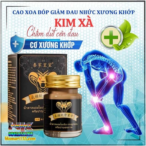 Cao Bôi Xương Khớp Kim Xà với thành phần thảo dược 100% thiên nhiên, Sản phẩm giúp cải thiện tình trạng đau, viêm cơ, tăng tốc độ máu, loại bỏ sự khó chịu, chuột rút, tê liệt chân tay. Kem thích hợp để giảm đau ở các cơ và khớp có cường độ khác nhau, mệt mỏi, chèn ép dây thần kinh, bầm tím, bong gân và đứt dây chằng, căng cơ do hoạt động thể thao, co rút cơ do làm việc văn phòng ít vận động.