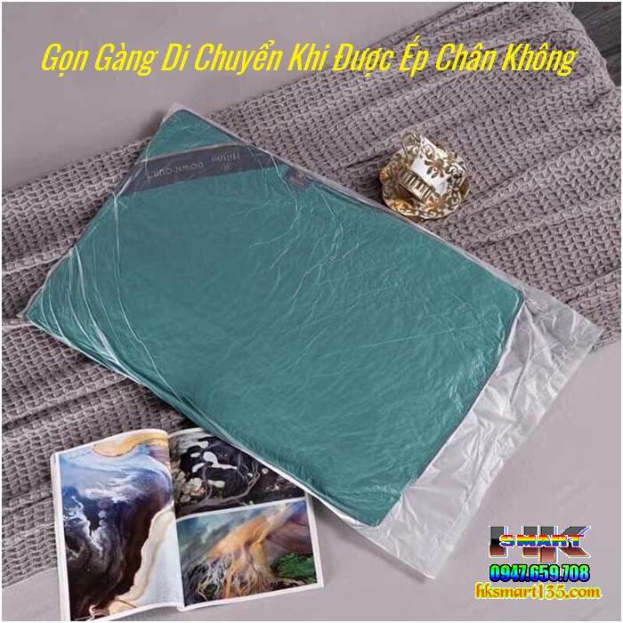 + Gối được hút chân không mỏng dính, bạn chỉ việc cắt túi bóng ra là gối tự phồng.