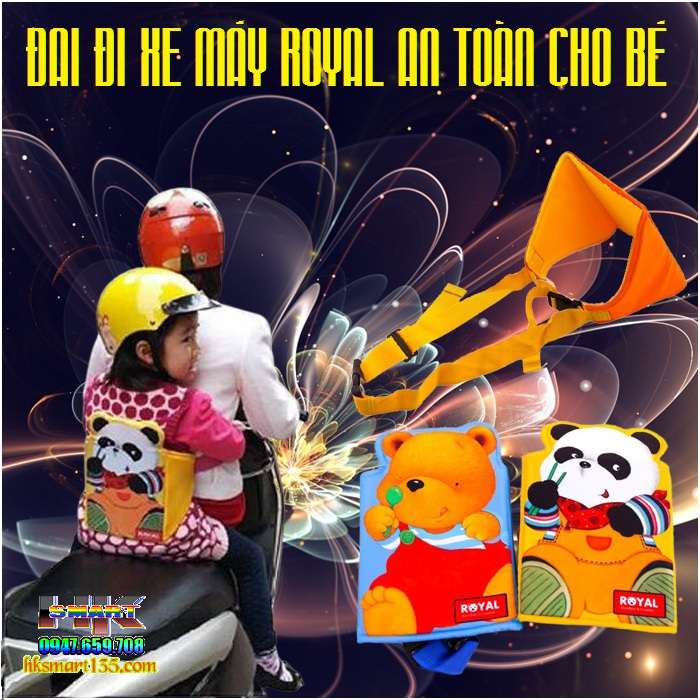– Đai xe Royal được thiết kế dành riêng cho các bé, giúp các bé an toàn hơn khi đi xe máy – sản phẩm cho bé trên 9 tháng tuổi.