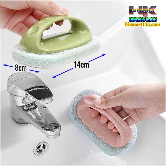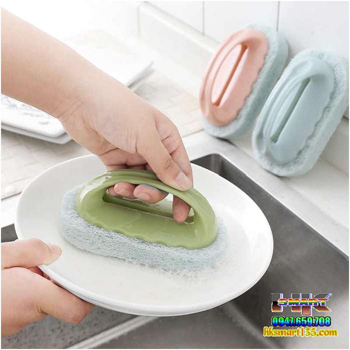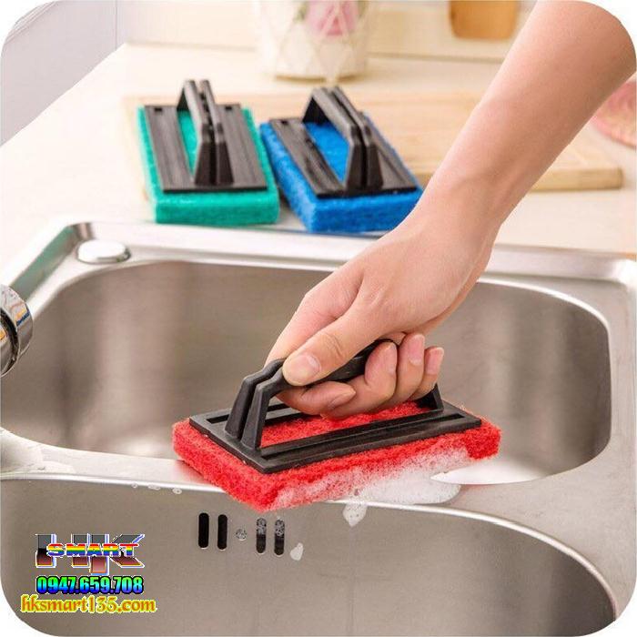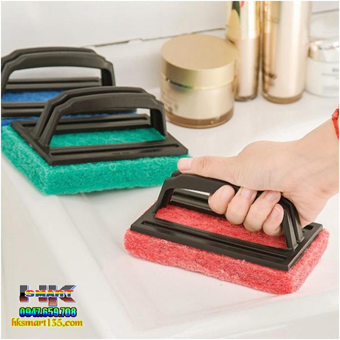 Miếng bọt biển chà vệ sinh có tay cầm là dụng cụ nhỏ gọn, tiện ích nhất trong việc lau chùi các vết bẩn trong nhà. Sản phẩm tạo thành từ các sợi tổng hợp để có thể lau chùi bất kỳ vết bẩn nào. Đây là một sản phẩm tiện ích được thiết kế tay cầm phía trên, giúp việc vệ sinh dễ dàng hơn, tiết kiệm thời gian, chi phí trong việc cọ rửa đồ nấu nướng nồi.
